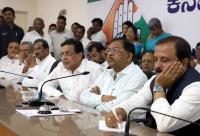 KPCC President Dr G Parameshwar with Minister Seetharam, K J George and congress senior leaders during a meeting at KPCC, in Bengaluru on Saturday 31st March 2018