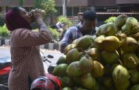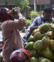 People seen drinking Tender Coconut to quench their thirst in this scorching heat, in Bengaluru on Wednesday 4th April 2018