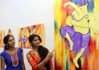 Visitors seen at the Art Exhibition “Varna” at Chitrakala Parishat, in Bengaluru on Friday 6th April 2018