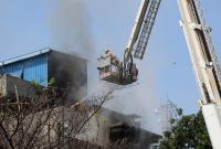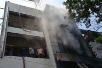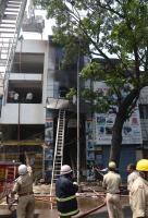 Fire personnel douse the fire which had caught at a hardware shop at Narasimha Raja Road near SJP Park, in Bengaluru on Wednesday 11th April 2018