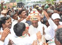 | Event Details: | Chief Minister Siddaramaiah with son Dr Yatindra, seen campaigning at Chamundeshwari Constituency for the upcoming Assembly Elections, near Mysuru on Tuesday 17th April 2018 |