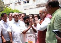 | Event Details: | BJP National President Amit Shah interacting with Eminent Writer Dr Siddalingaiah during his visit to Dr Siddalingaiah residence , also seen are Union Ministers Ananth Kumar, D V Sadananda Gowda, BJP State President B S Yeddyurappa at Rajarajeshwari Nagar, in Bengaluru on Wednesday 18th April 2018 |