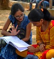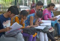 CET students last minute preparations at CET exam centre at Seshadripuram College during CET exam which began today, in Bengaluru on Wednesday 18th April 2018