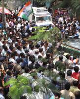 An Ambulance being blocked at Vijaya Nagar during road show of Vijaya Nagar Congress Candidate, M Krishnappa, in Bengaluru on Monday 23rd April 2018