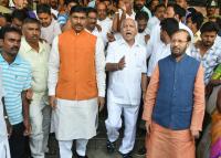 | Event Details: | BJP State President B S Yeddyurappa with Union Minister Prakash Javadekar, P Muralidhar Rao, Karnataka In Charge and BJP leaders coming out after the meeting at a hotel on BY Vijayendra issue, in Mysuru on Tuesday 24th April 2018 |