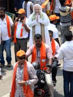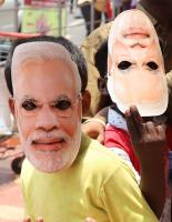 BJP Workers Wear Masks and Cut outs for Election Campaign