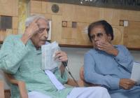 Freedom Fighter HS Doreswamy and Prof B K Chandrashekar, addressing press conference at Press club, in Bengaluru on Tuesday 1st May2018