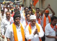 Katta Subramanya Naidu, BJP candidate for Shivajinagar Assembly Constituency campaigning with his supporters, in Bengaluru on Wednesday 2nd May 2018