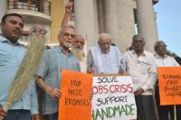 | Event Details: | Members of Grama Seva Sangha led by Freedom Fighter HS Doreswamy protesting against neglecting Handmade products industry, the protest was held at Town Hall, in Bengaluru on Sunday 6th May 2018 |