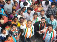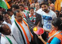 Dinesh Gundu Rao, Congress candidate for Gandhinagar Assembly Constituency campaigning with his supporters, in Bengaluru on Tuesday 8th May 2018