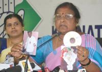 Padmavathi, Congress Candidate for Rajajinagar assembly constituency addressing press conference at KPCC office, in Bengaluru on Thursday 10th May 2018