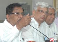 Dr G Parameshwar, KPCC president, addressing the media with congress leaders at KPCC office, in Bengaluru on Sunday 13th May 2018