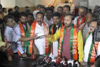 | Event Details: | Union Ministers Prakash Javadekar with Dharmendra Pradhan, DV Sadananda Gowda and BJP MLAs addressing press conference at BJP office, in Bengaluru on Wednesday 16th May 2018 |