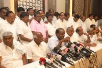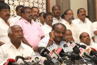 JDS State President HD Kumarswamy addressing press conference with JDS MLAs after JDS legislative meeting at a hotel, in Bengaluru on Wednesday 16th May 2018