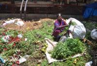 A vegetable vendor seen selling vegetables in the middle of the garbage at KR Market, in Bengaluru on Sunday 20th May 2018