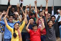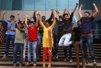 Jubilant students seen celebrating after the CBSE 12th results were announced at Venus International Public School, Rajajinagar, in Bengaluru on Saturday 26th May 2018