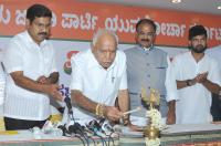 | Event Details: | BJP State President BS Yeddyurappa lighting the lamp to inaugurate special meeting of BJP Yuva morcha , also seen are MLA Arvind Limbavali, MP Pratap Simha and BJP Leader Vijayendra at a hotel, in Bengaluru on Saturday 9th June 2018 |
