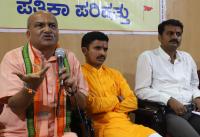 Pramod Muthalik and members of Hindu Janajagruti Samiti and others addressing a press conference on the Gauri Lankesh murder case at Press Club, in Bengaluru on Tuesday 12th June 2018