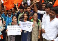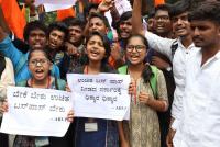Members of ABVP staged a protest, demanding for free bus passes for students at Anand Rao Circle, in Bengaluru on Thursday 14th June 2018