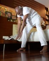 Former PM and JDS Supremo HD Devegowda performing yoga to mark the 4th International Day of Yoga at his residence, in Bengaluru on Thursday 21st June 2018