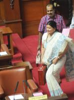 Minister Jayamala with Budget Briefcase at Council Session at Vidhan Soudha