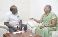 Sudha Murthy, Chairperson, Infosys Foundation met Chief Minister of Karnataka H D Kumarswamy, in Bengaluru on Saturday 7th July 2018