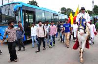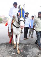 | Event Details: | Members of Kannada Chaluvali Vatal Paksha led by its president Vatal Nagaraj, seen riding a horse at Kempegowda Bus Stand in protest and demanding for free bus passes to the students, in Bengaluru on Friday 13th July 2018 |