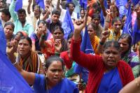 Members of Dalita Sangharsha Samithi staged a protest in front of Slum Board to fulfill their various demands, in Bengaluru on Wednesday 18th July 2018