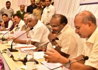 CM HD Kumarswamy with Minister HD Revanna and others held a review meeting on rain and floods situation in Madikeri District on Thursday 19th July 2018