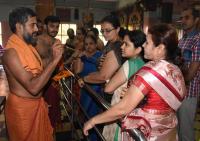 Devotees in queue for the Mudra Dharana ritual being applied by Swamiji on the the occasion of Ashada Ekadashi at Raghavendrawamy Mutt in Jayanagar 5th Block, in Bengaluru on Monday 23rd July 2018