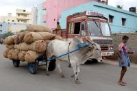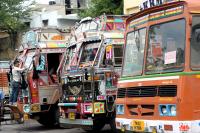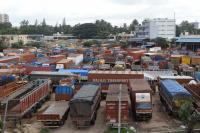 Lorries being parked at a terminal, due to indefinite lorry strike, in Bengaluru on Wednesday 25th July 2018