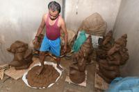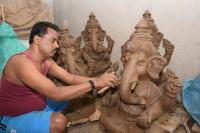 A man seen making clay Ganesha for the upcoming Ganesha Festival in Mysuru on Wednesday 29th August 2018