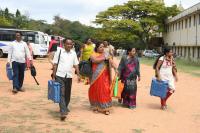 Polling officials collect EVMs and others material for the Mysore City Corporation (MCC) elections to be held tomorrow in Mysuru on Thursday 30th August 2018