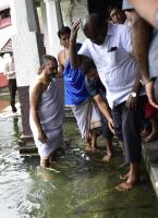 CM HD Kumarswamy seeking blessings from Lord Krishna during his visit to Udupi on Friday 7th September 2018