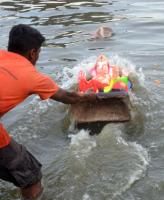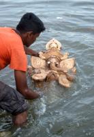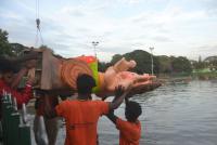 Volunteers seen immersing the Ganesha Idols at Ulsoor Lake for the Ganesh Chaturthi Festival, in Bengaluru on Monday 17th September 2018