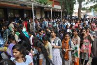 Students standing in long queue for bus pass at Kempegowda Bus Stand, in Bengaluru on Saturday 22nd September 2018