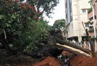 Huge Tree Uprooted in BTM Layout after Last Night Rainfall