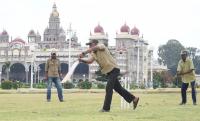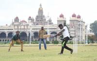 Labourers at Mysore palace seen playing a game of cricket in the gardens of Mysore Palace, in Mysuru on Tuesday 25th September 2018