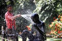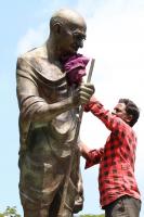 Mahatma Gandhi Statue Getting Cleaned for Gandhi Jayanti
