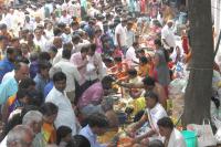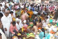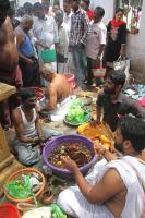 Devotees perform pooja for Mahalaya Amavasya at Kashi Vishwanath Temple, Chickpet, in Bengaluru on Monday 8th October 2018