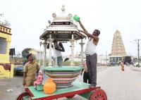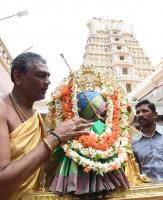 Goddess Chamundeshwari and the chariot atop Chamundi Hill being prepared for the inauguration of the Dasara 2018 celebrations tomorrow, in Mysuru on Tuesday 9th October 2018