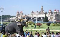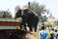 Dasara elephants were given a grand farewell from Mysuru Palace after the Dasara 2018 celebrations, in Mysuru on Sunday 21st October 2018