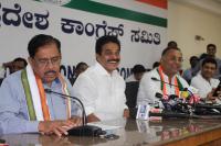 | Event Details: | Congress leaders DCM Dr G Parameshwar, KC Venugopal, Dinesh Gundu Rao, and others addressin a press conference on the Bypoll election results at KPCC office, in Bengaluru on Tuesday 6th November 2018 |
