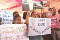 School Children with Environmentalist, Suresh Heblikar, participated in Save Bandipura campaign at Freedom Park, in Bengaluru on Saturday 10th November 2018