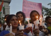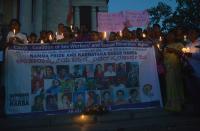Members and supporters of transgender community hold a banner with photographs of transgenders who have died at a candlelight vigil on Transgender Day of Remembrance at Town Hall , in Bengaluru on Tuesday 20th November 2018