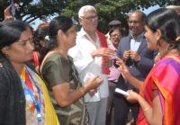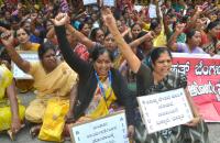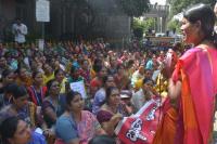 Members of AITUC and BBMP Samparka Karyakarteyaru (call center workers) protesting to fulfill their various demands at BBMP, in Bengaluru on Wednesday 28th November 2018