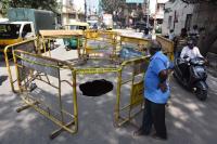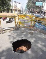 Motorists having tough time as the road caved in deep at Cottonpet, in Bengaluru on Saturday 1st December 2018