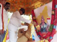 | Event Details: | Vatal Nagaraj, President, Kannada Chaluvali Vatal Paksha and members offering floral tribute to Bhuvaneshwari portrait on the ocassion of New Year at SBM Circle, in Bengaluru on Tuesday 1st January 2019 |