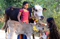 Girls Offering Pooja to Cattle on Sankranti Festival