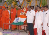 Thousands of devotees throng Tumakaru to pay last respects to Sri Shivakumara Swami of Siddaganga Mutt for the funeral, in Tumkuru on Tuesday 22nd January 2019